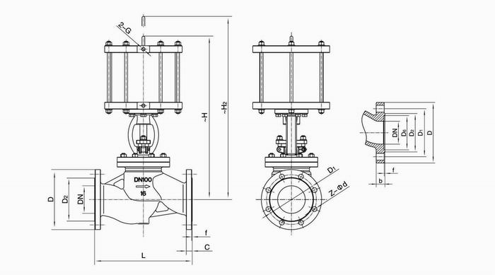 進口氣動截止閥采用雙作用氣缸,利用上腔進氣或者下腔進氣來遠距離控制閥門,操作方便、靈活。結構簡單、制造和維護方便;工作行程小,啟閉時間短;關閉體與閥座密封面采用錐面密封,關閉力小,耐沖刷,密封可靠。閥座可為更換式閥座,可任意組合與關閉件密封面材料的配對,以滿足工況要求,延長使用壽命。