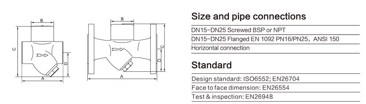 疏水閥內有一個閥片,既是敏感件又是動作執行件。當裝置啟動時,管道出現冷卻凝結水,凝結水靠工作壓力推開閥片,迅速排放。當凝結水排放完畢,蒸汽進入疏水閥內,蒸汽的體積迅速擴大,蒸汽比凝結水的流速大,使閥片上下產生壓差,閥片在蒸汽流速的吸力下迅速關閉。當閥片關閉時,閥片受到兩面壓力,閥片下面的受力面積小于上面的受力面積,因疏水閥汽室里面的壓力來源于蒸汽壓力,所以閥片上面受力大于下面,閥片緊緊關閉。當疏水閥汽室里面的蒸汽降溫成凝結水,汽室里面的壓力消失。凝結水靠工作壓力推開閥片,凝結水又繼續排放,循環工作,間斷排水