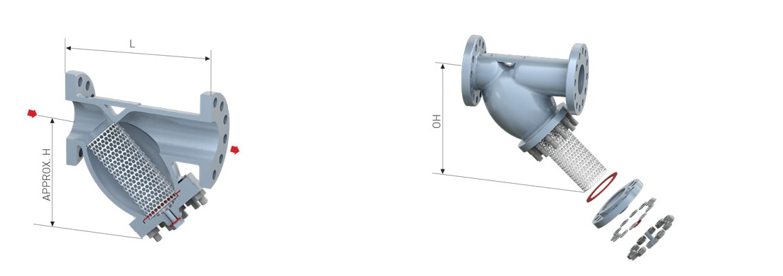 進口蒸汽Y型過濾器是輸送介質的管道系統不可缺少的一種過濾裝置,Y型過濾器通常安裝在減壓閥、泄壓閥、定水位閥或其它設備的進口端,用來清除介質中的雜質,以保護閥門及設備的正常使用。Y型過濾器具有結構先進,阻力小,排污方便等特點。Y型過濾器適用介質可為水、油、氣。一般通水網為18~30目,通氣網為10~100目,通油網為100~480目。 籃式過濾器主要由接管、主管、濾藍、法蘭、法蘭蓋及緊固件等組成。當液體通過主管進入濾藍后,固體雜質顆粒被阻擋在濾藍內,而潔凈的流體通過濾藍、由過濾器出口排出。