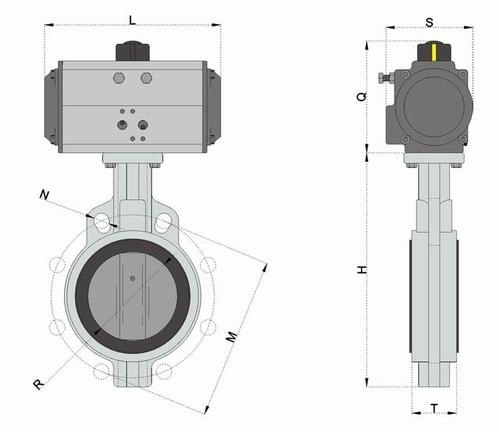 進(jìn)口氣動對夾式襯膠蝶閥通過氣動執(zhí)行機(jī)構(gòu)驅(qū)動蝶板旋轉(zhuǎn),實(shí)現(xiàn)流體的快速啟閉與流量調(diào)節(jié)27。其采用對夾式連接設(shè)計,無需額外法蘭,顯著節(jié)省安裝空間,尤其適用于緊湊型管道系統(tǒng)(如船舶、化工裝置)56。閥體內(nèi)壁及蝶板表面襯覆橡膠材料(如NBR、EPDM、FKM),兼具耐腐蝕性與密封性能,可適配腐蝕性介質(zhì)及衛(wèi)生要求較高的場景