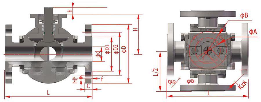 進(jìn)口四通法蘭球閥的外形尺寸和連接尺寸