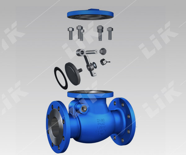 閥瓣圍繞閥座內(nèi)的銷軸旋轉(zhuǎn)的止回閥。碟式止回閥結(jié)構(gòu)簡單,只能安裝在水平管道上,密封性較差。