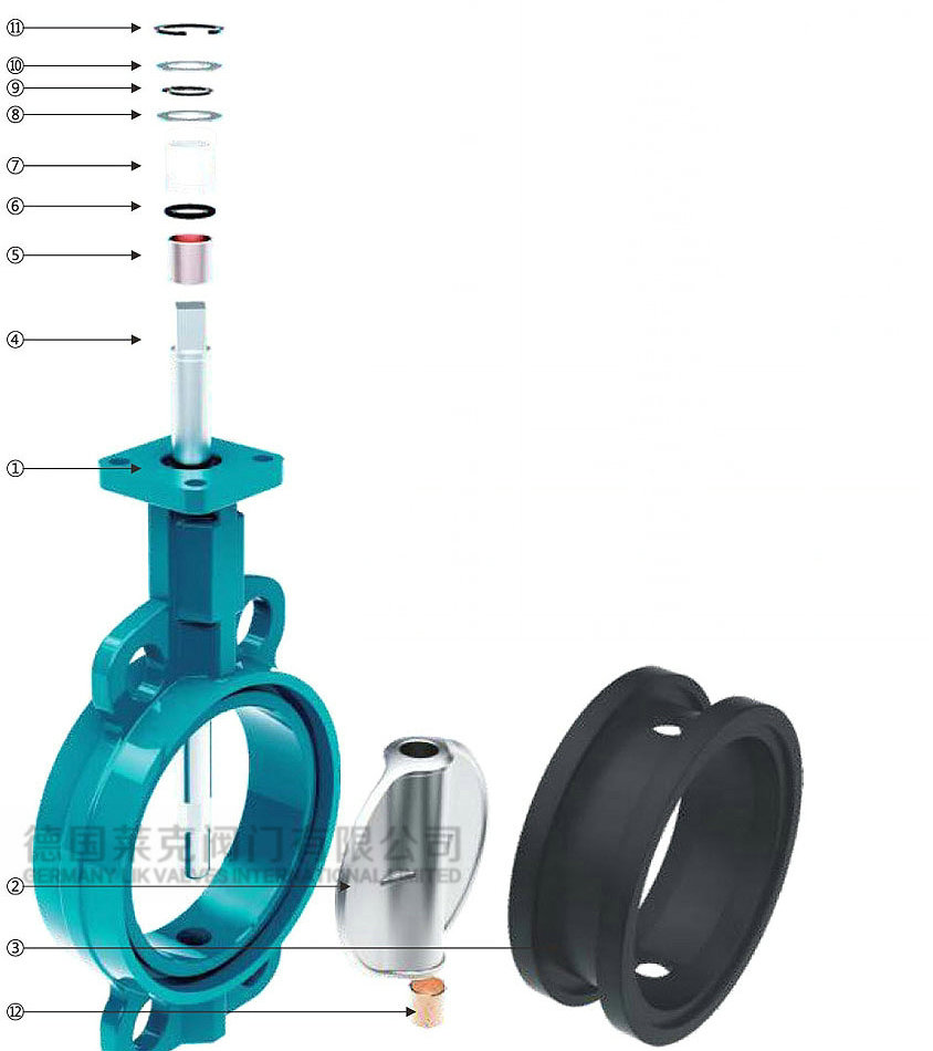 閥體:灰鑄鐵,球墨鑄鐵,鑄鋼,304不銹鋼,316不 銹鋼,316L不銹鋼 閥板:球鐵尼龍,球鐵電鍍,304不銹鋼,316不銹 鋼,316L不銹鋼,雙相不銹鋼,鋁青銅 閥座:三無乙丙(EPDM),丁腈(NBR),耐溫乙 丙(EPDM),氟橡膠,硅橡膠 閥軸:45碳鋼,410不銹鋼,304不銹鋼,316不銹鋼 公稱通徑:DN50-DN600 公稱壓力:PN1.0-1.6Mpa 適用介質:水,海水,污水,油,空氣,食品,弱酸 堿等 使用溫度:-20~220℃